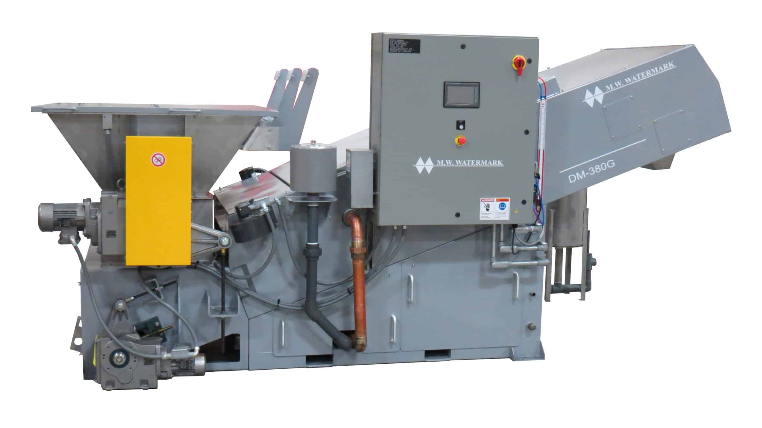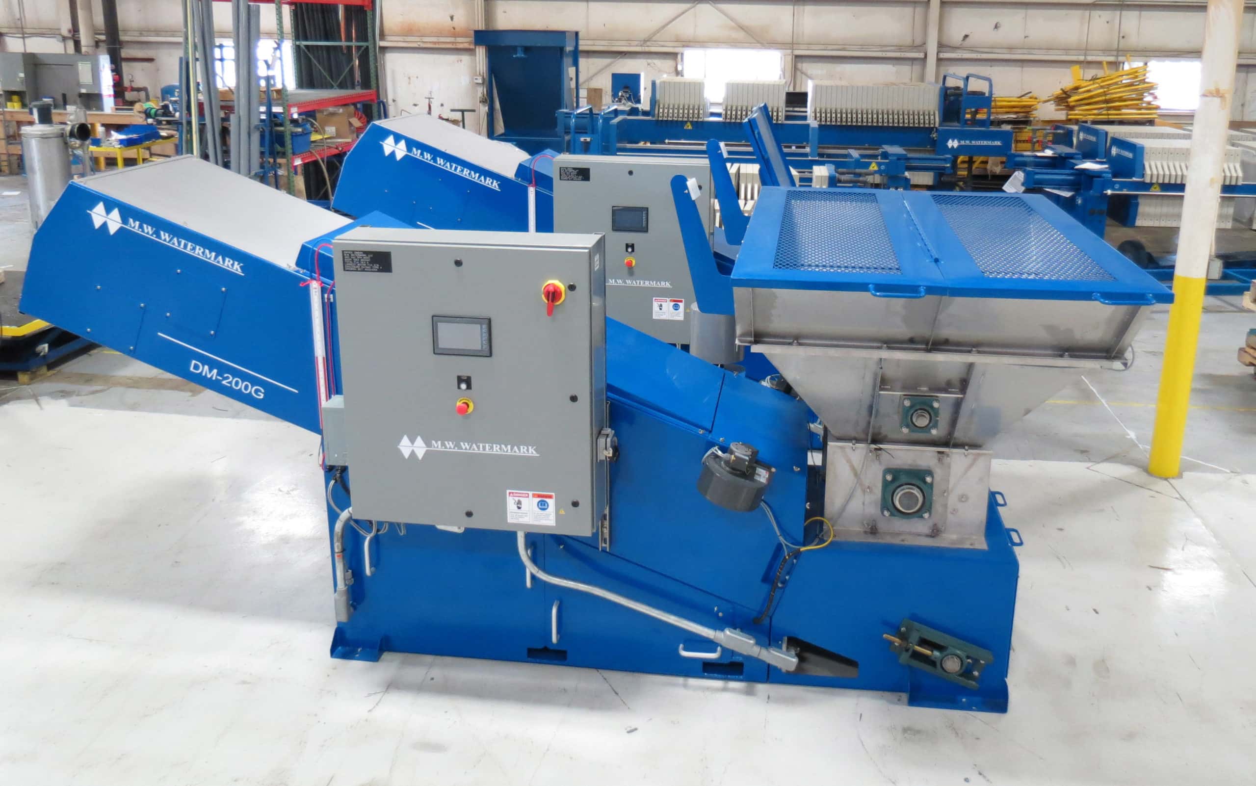We offer the M.W. Watermark™ Continuous Sludge Dryer in two models, the DM-200G and the DM-380G. At full capacity, the DM-200G can process up to three cubic feet of material in an hour, while the larger DM-380G can process double that, or six cubic feet. These machines are designed to process metal hydroxide plating wastes, and, when used in conjunction with your filter press, are used to dry filter cakes and bring them from 30% solids to up to 75% solids*.